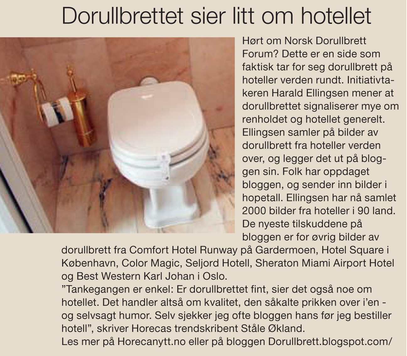 Jeg ble gratulert av en hotelldirektør/bidragsyter med omtalen i Horeca, gikk inn på buyandread.com - søkte på dorullbrett og fant artiklene :-)